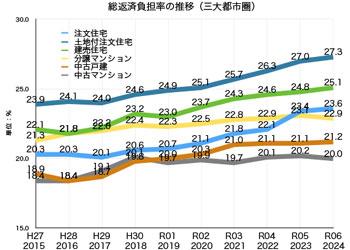 総返済負担率は住宅建築からマンション購入まで、すべての住宅種別で上昇中です。
