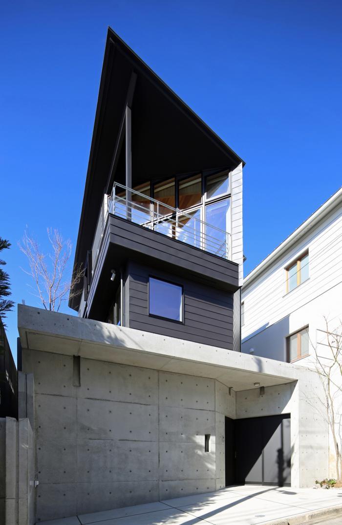 多摩川に下る急な坂のひな壇状の敷地に建つ家です。隣家の屋根越しに、遠く視界が広がるリビングが特徴です。下記リンクから、是非ご覧ください。https://www.youtube.com/watch?v=Yz-NTnjS8GU