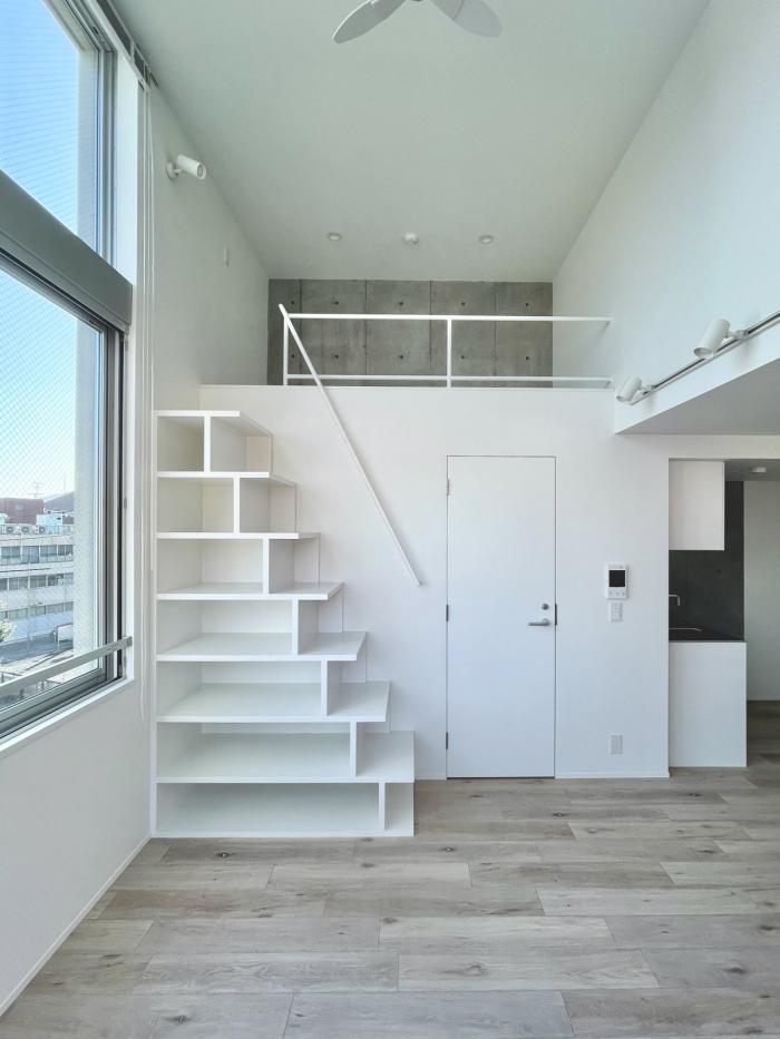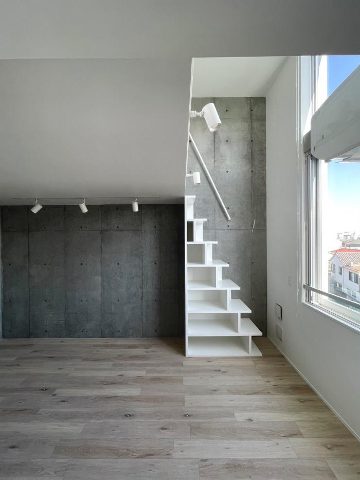 同時に、スキップフロアの断面構成や三角形の敷地に呼応した平面形状など、事業用物件として収益性を最大化するための効率的な空間活用も実現しています。