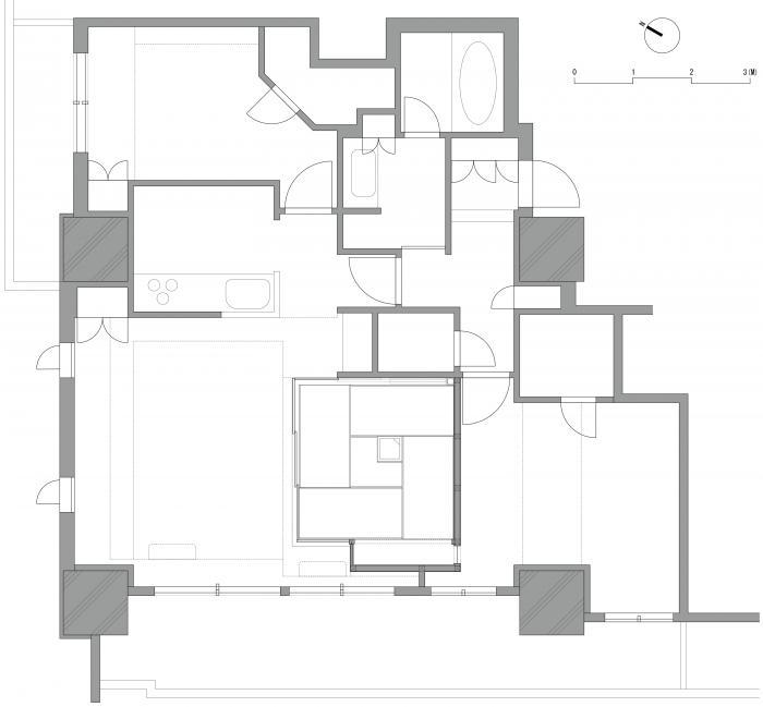 BEFORE. お茶室設置前平面図。