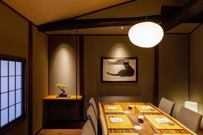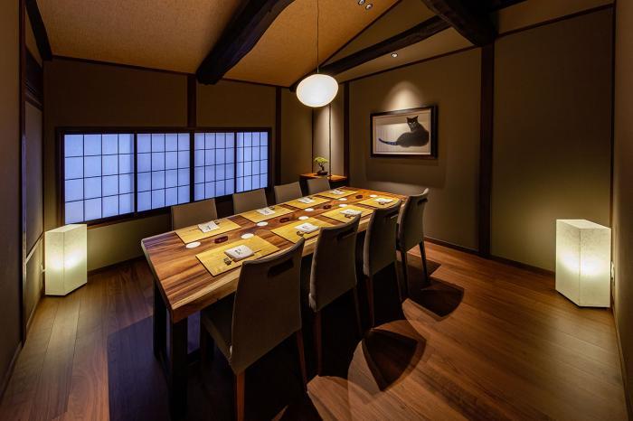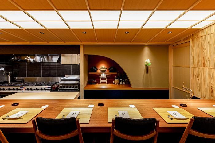料理長として[祇園 さゝ木]のカウンターに立っていた前川浩一さん。京都屈指の名店で体得した技術に尽きない探求心を重ねた新境地に数寄屋和風の洗練されたデザインが映える日本料理店です。全10席の一枚板のカウンター席の他にも、上階に個室が計画されています。既成の枠にとらわれない、アイデア冴える細やかな料理の数々。是非お運びくださいませ。