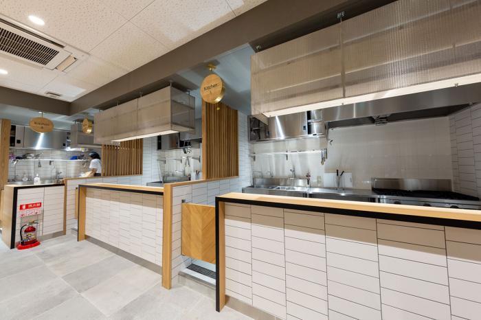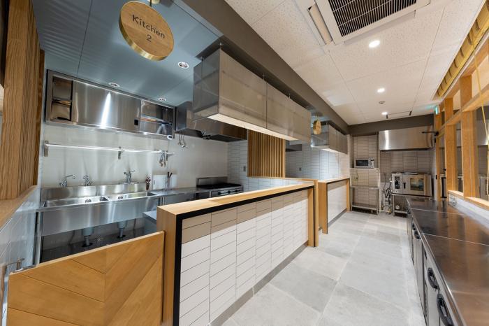 各種厨房機器が完備された、3つのキッチンエリアに隣接して、イートインスペースも併設されています。明るく開放的なモダンデザインに、機能性をプラスした新時代の調理空間。このニーズにマッチした注目の店舗です。