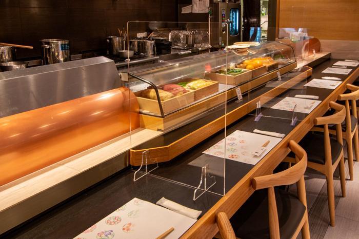 和風カウンターが特長的。老舗ならではのしつらえと、新鮮な旬のネタをお楽しみくださいませ。