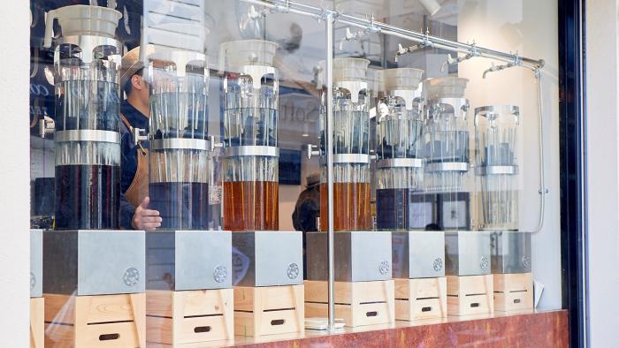 「特注の給茶機を窓辺にディスプレイするデザインがとても良かったです。入口から発券機、提供カウンターまでの一筆書きの動線もスムーズに機能しています。街に対してオープンで分かりやすい店舗になり感謝しています。」