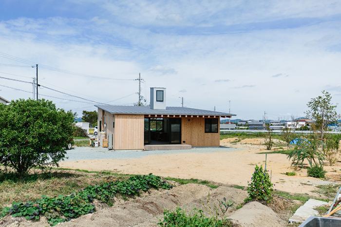 南側の庭から建物を見たところ。施主さん自身で開墾した畑も、年々豊かに育ってきています。