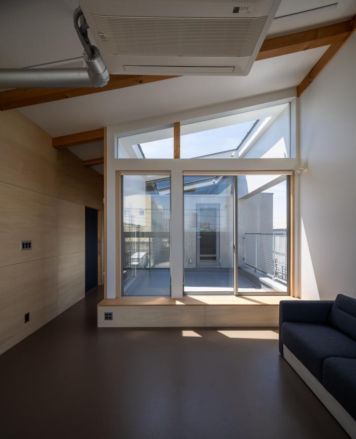 加えて前面道路に面した北側のファサードには、木質化した内部を見通す大開口を設けました。