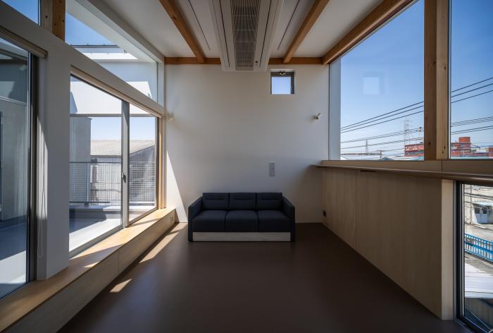3階休憩室の内観−2:向かって左側が前面道路側の大開口