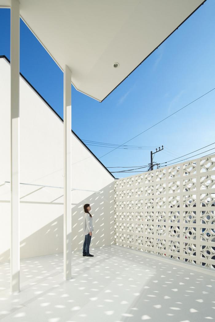 花ブロックを利用して街と住まいを緩やかに繋げます。レースのカーテンのようにプライバシーを守ります。