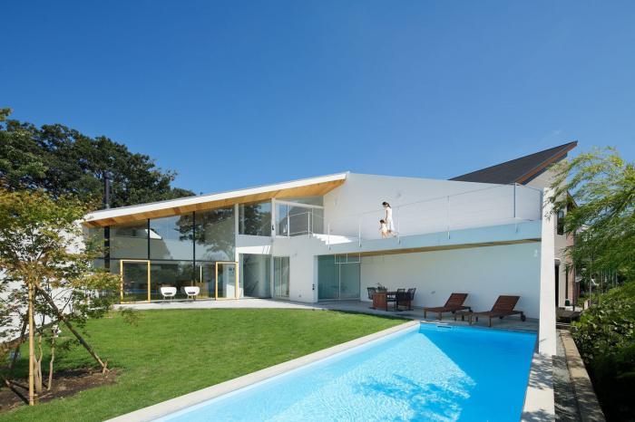 変形敷地に敷地なりにボリュームをおこし、環境に応じて弊の高さを変えることで、プライバシーを守りながら、風景に対して眺望のあるデザインとしました。