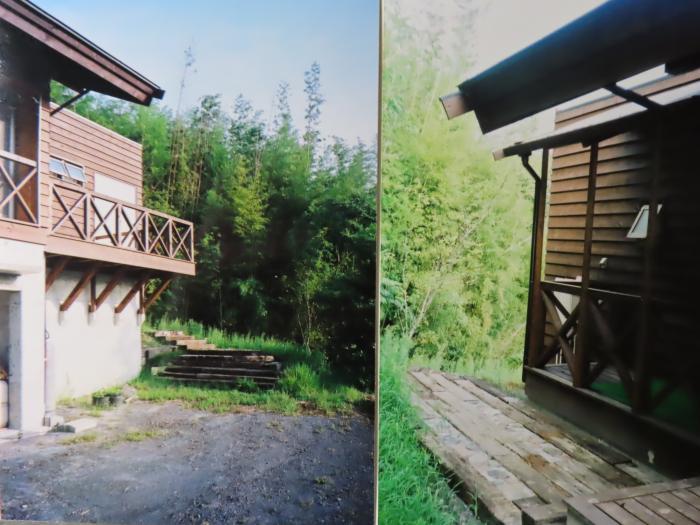 RC本体の周囲を囲みRCと木造、傾斜地の一体感が感じられる。