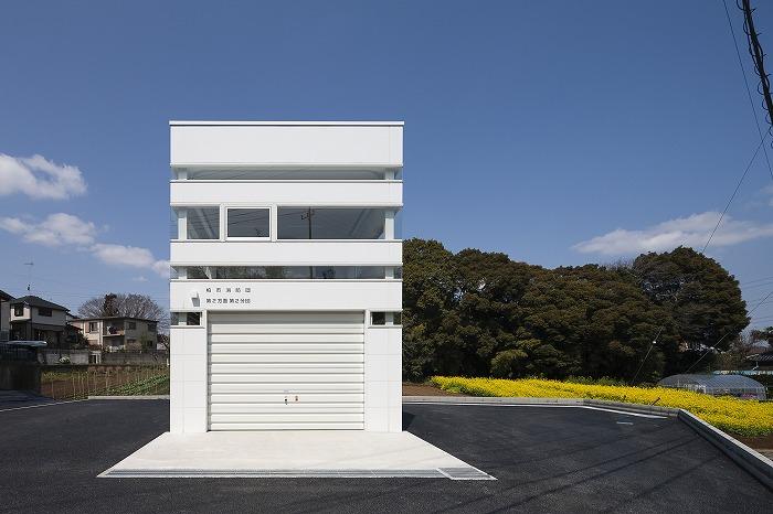 ベッドタウンの郊外にある消防団の器具置場。