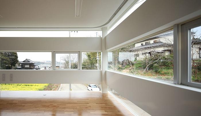 その結果、連窓と細長い壁が何度も反復する建築形態は周囲の住宅と比べスケール感が異なり、建築物として存在感が強くなった。