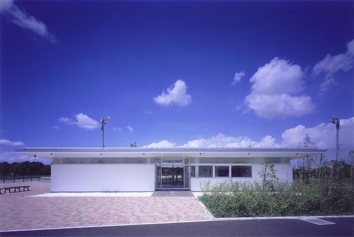 また、クライアントから「軽い屋根」の表現を求められたことを契機に、屋根と壁を全く分離した構造形式を提案した。これは、プライバシーを強く求められる諸室にも充分な採光を確保でき、居心地のよい内部空間を実現できた。クラブハウスの屋根は緩やかな片勾配を有し、公園側の軒は低く押さえられ、控えめな存在となる。また、テニスコート側には大きく開いた形となり、弧を描く天井の形態とも相まって、存在感の強い形態となった。