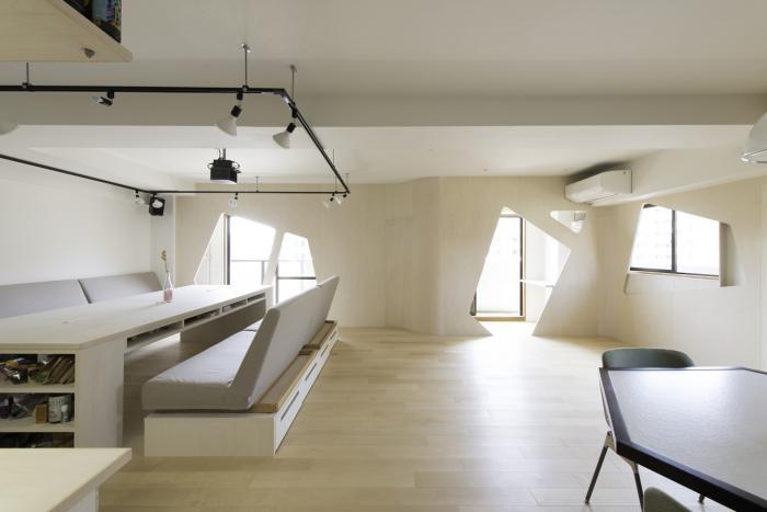 陽光は階段の2階から取り込み、庭に面する窓とは分けて考えました。 |